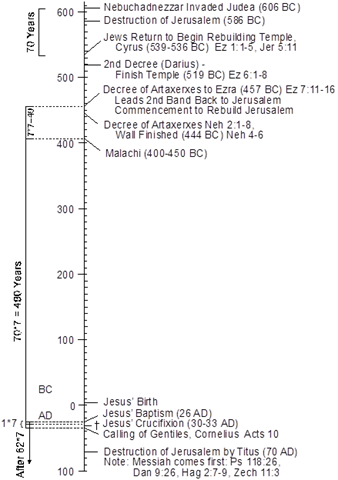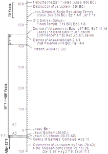 One further note, that there seems to be something significant about the first 49 years (seven ‘sevens’) of the 483-year period. This may refer to the period by which the Lord would still speak through the prophets, Malachi being the last of the old testament prophets, about 450-400 BC.
