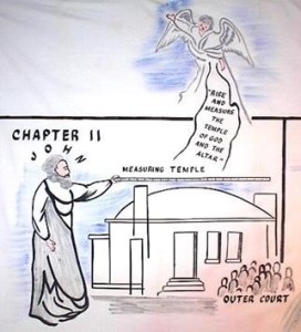 In the previous chapter we learned of the Bible being translated from dead languages. Now we are told to rise and measure the Temple of God. When the Apostle Paul wrote to the Corinthians he referred to them as the Temple of God. Priests like John Wycliffe of Oxford, Tyndale (another Oxford monk), and Coverdale (who made the first complete English Bible) gave the world a book that contained the correct measurements. The Roman Clergy had taken the Bible from the people. They were opposed to its circulation. They had put it in a dead language and no one but the monks were allowed to read it. Until Martin Luther found a Latin Bible in an Augustinian monastery he did not know there were scriptures other than the ones in the Catholic breviary. After reading the Word of God he became a reformer. He used the measuring rod of God’s word to determine that their doctrine did not measure up the Bible standard. He couldn’t find purgatory, celibacy, nuns, holly water, worship of saints (idolatry), image worship. After a careful examination of the doctrines of Catholicism one can truthfully say that none of them measure up to the measuring rod. God says the two witnesses (Old Testament and New Testament) would prophesy in sackcloth and ashes (dead languages) during the period of the dark ages and come back to life again. Today we have the LIVING WORD OF GOD.